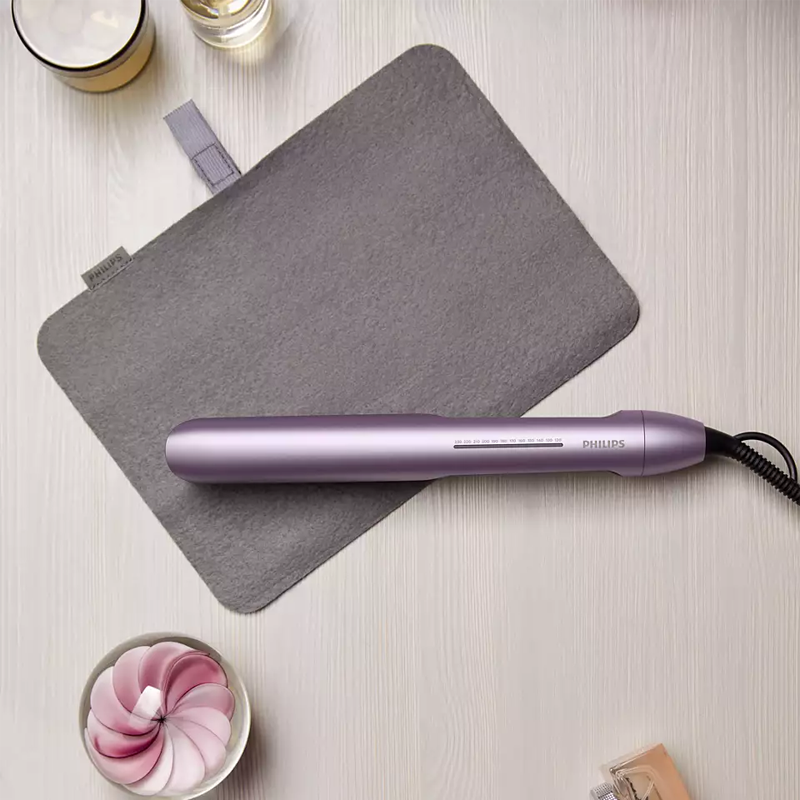يأتي مملس الشعر BHS530 بنظام عناية أيوني مضاعف (2x Ionic Care)، حيث يطلق ملايين الأيونات السالبة في الجلسة الواحدة لإزالة الكهرباء الساكنة ومنح الشعر لمعاناً فائقاً. تم تصميم الجهاز بصفائح طويلة (105 ملم) لتغطية مساحة أكبر من الشعر في التمريرة الواحدة، مما يسرع عملية التمليس. يوفر الجهاز نطاقاً واسعاً من درجات الحرارة يصل إلى 12 إعداداً مختلفاً (من 120 إلى 230 درجة مئوية)، مما يمنحك تحكماً دقيقاً يناسب جميع أنواع الشعر.