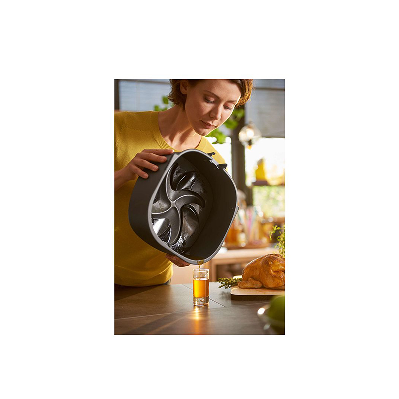 تقنية Rapid Air: تستخدم تقنية Rapid Air تيارًا من الهواء الساخن عالي السرعة لقلي الأطعمة بشكل متساوٍ دون الحاجة إلى الزيت. نتيجة طريقة الطهي هذه هي أطعمة ذات قوام مقرمش وطعم لذيذ تحتوي على دهون أقل بنسبة تصل إلى 90%. هذه الميزة جذابة بشكل خاص للأشخاص الذين يتبعون نظامًا غذائيًا صحيًا. مع تقنية Rapid Air، يمكنك الاستمتاع بأطعمة تحتوي على نسبة أقل من الدهون والسعرات الحرارية. تساهم هذه التقنية أيضًا في تقليل رائحة الأطعمة المقلية في المطبخ، مما يحافظ على نظافة ورائحة المطبخ. تضمن تقنية Rapid Air طهيًا متساويًا وكاملاً للطعام عن طريق تدوير الهواء بسرعة حول المكونات، وتمنع احتراق الطعام.